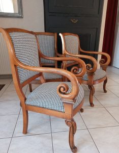 Je vous présente ce trio de fauteuils « restauration », un bel ensemble. Venez consulter à mon magasin cette collection de la maison Sourice.